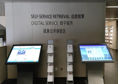 体验区兼顾各类群体多样化查阅需求,坚持线上与线下相结合、人工与自助相结合的原则,在市图书馆一楼、二楼展厅内投放了3台一体式查阅机,配置了《政府公报》等纸质材料。